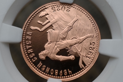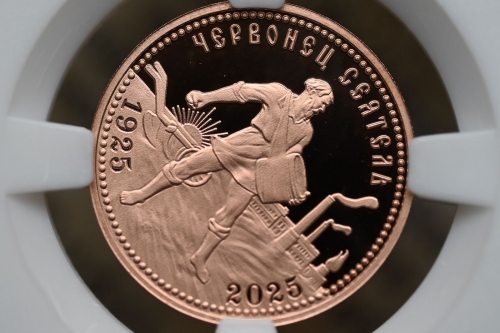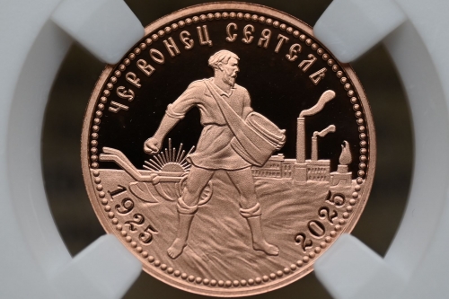 Червонец Сеятель 2025г.,Медь, "К 100-летию чеканки пробного Червонца 1925г." в слабе ННР PROOF
