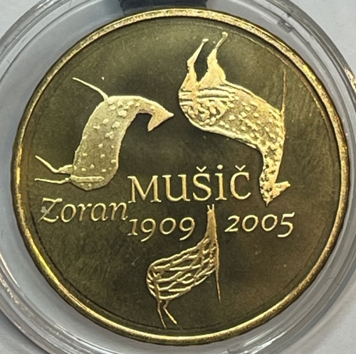 Золотая монета 100 евро "100 лет со дня рождения Зорана Музича" Словения, 2009г., Au 900, 7 г.