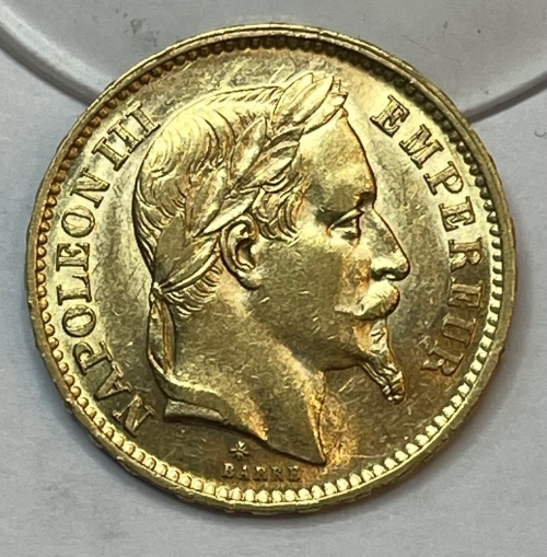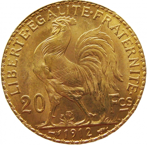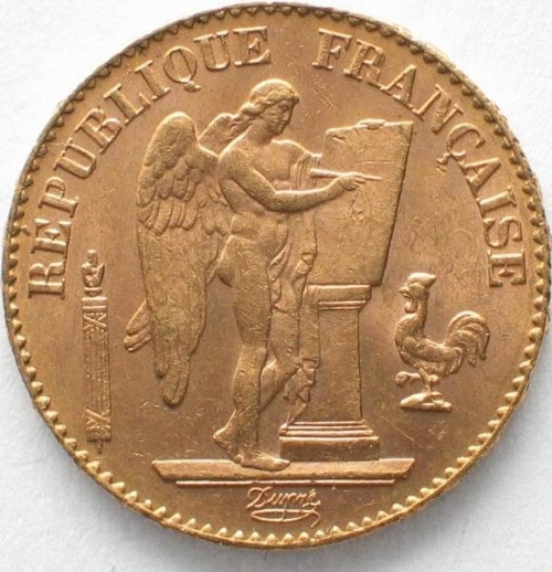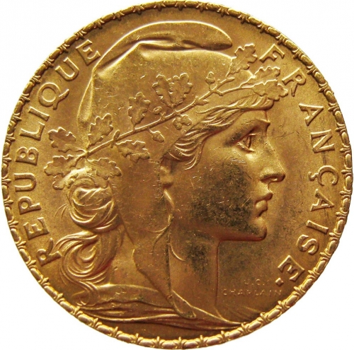 Золотая монета 20 франков Франция, Au 900, 6,45 г