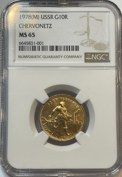 Золотая монета Червонец Сеятель 1978г., в слабе NGC MS 65