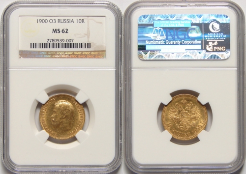 Вы всегда можете купить или продать, а также узнать текущую стоимость монеты - 'Золотая монета Николая II 10 рублей 1900 год состояние MS 62' в г.Великий Новгород (Новгородская область). У нас Вы получите полную и необходимую консультация от квалифицированных специалистов и профессионалов, работающих на рынке инвестиций в драгметаллы уже долгое время. Мы стараемся предложить нашим клиентам лучшие цены выкупа и продажи на рынке (с минимальным спредом), а также гарантируем конфиденциальность всех проводимых сделок.